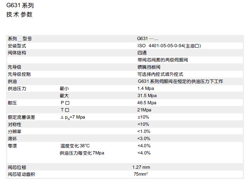 moog伺服閥G631系列的技術參數:
