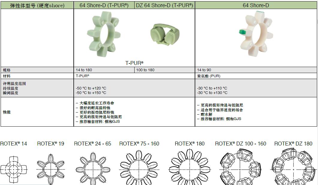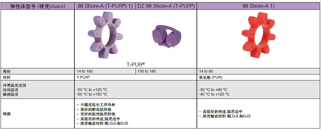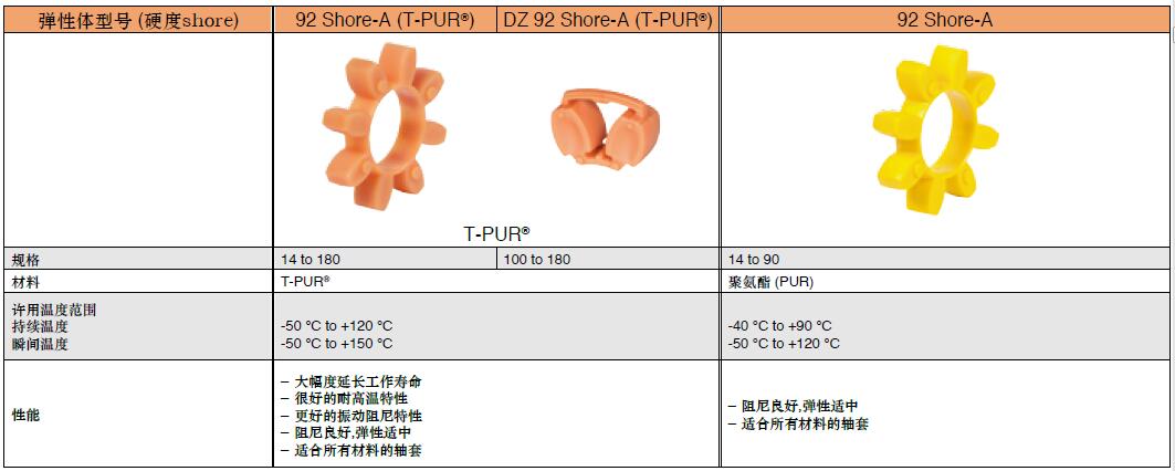 KTR聯軸器的標準梅花形彈性體的技術參數: