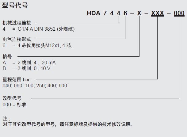 賀德克壓力傳感器HDA7446傳感器型號有: