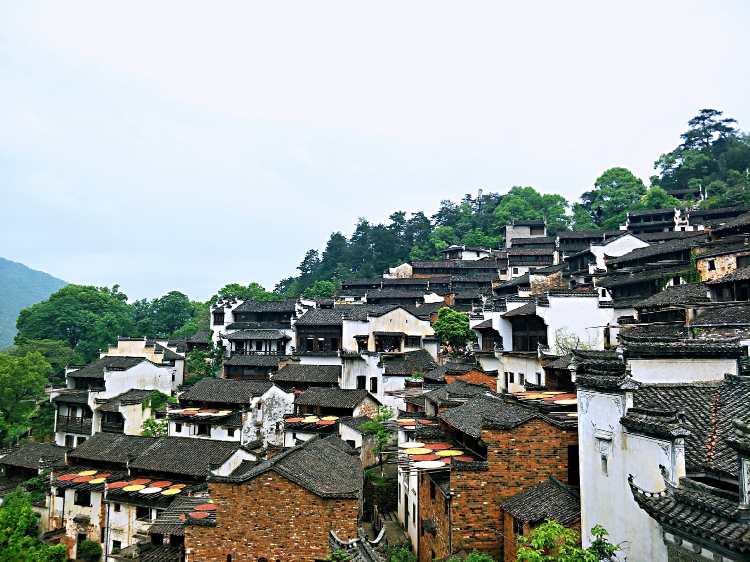 4月21日旅行最后一天,集體前往最后一個(gè)大景點(diǎn)——篁嶺,也是乘纜車上下,參觀了篁嶺冰雪館、都是徽派建筑的半山處村落、還有壘心橋。白墻黑瓦,棟棟房屋蓋在半山腰,錯(cuò)落有致,形成一道靚麗的風(fēng)景線,還有屋檐外曬秋也挺有特色,唯一遺憾的是油菜花謝了。
