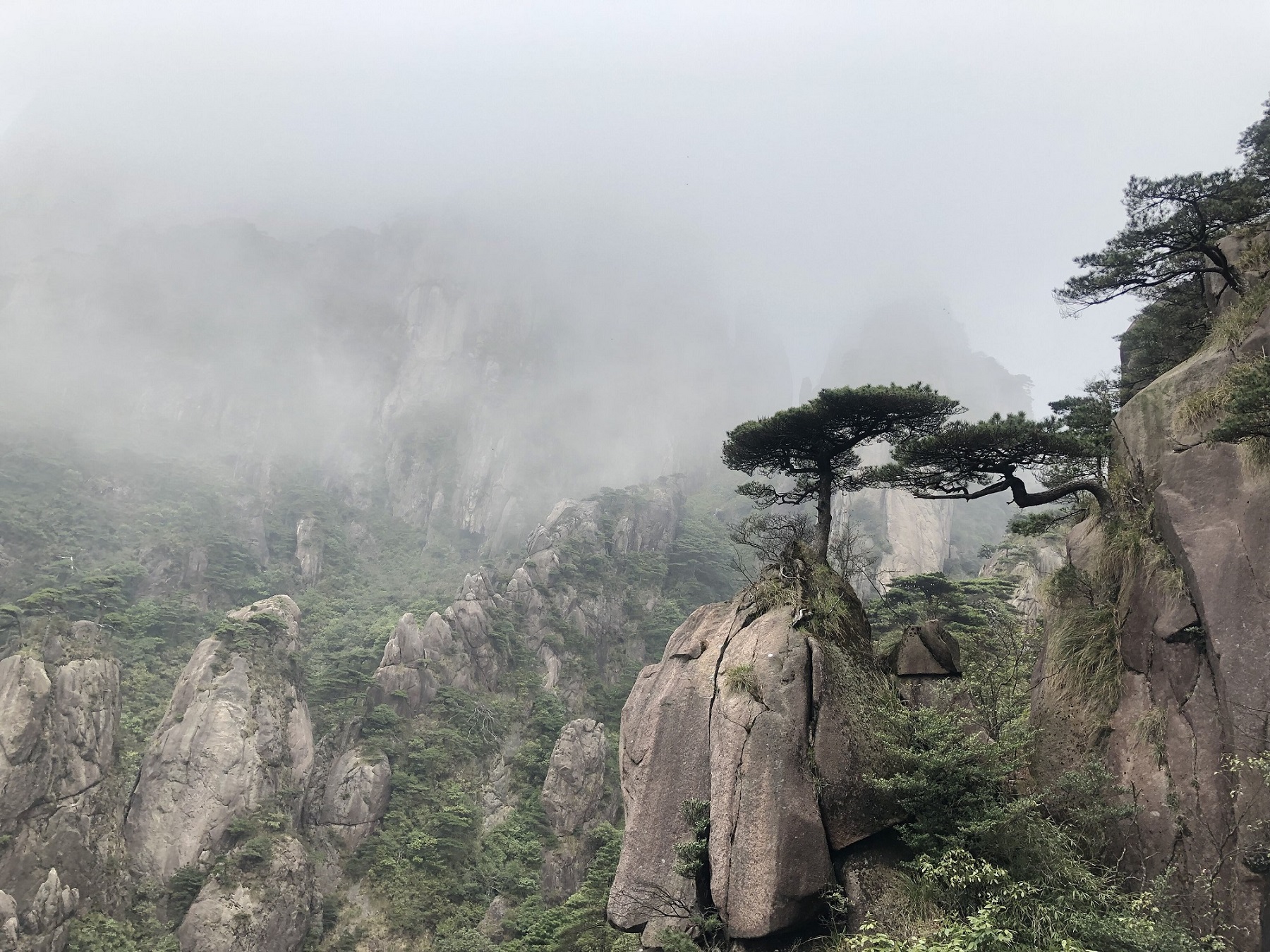 4月20日起了個(gè)早,出發(fā)前往本次旅行的主要景點(diǎn)——三清山,海拔達(dá)1800多米,乘坐纜車抵達(dá)800米左右的高度后,自己爬山至1500多米,纜車上去后繞著三清山景區(qū)一部分轉(zhuǎn)一圈就用了四五個(gè)小時(shí),據(jù)說棧道有30里,部隊(duì)的人耗時(shí)11年修建的,此時(shí)不得不感概人類的智慧和潛能。山上可以欣賞到各種奇形怪狀的巨石,在爬山過程中也不會(huì)覺得枯燥,整個(gè)公司的人步調(diào)都很一致,一天下來雖然有點(diǎn)累,不過很值得!
