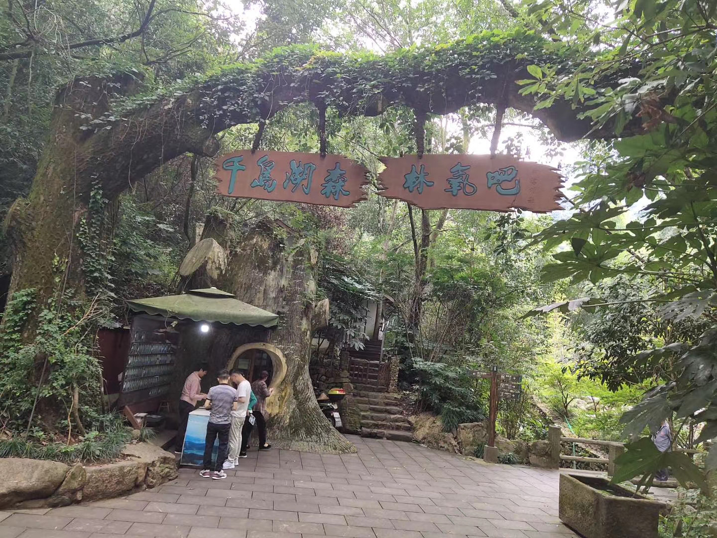 第三日,用過早餐,我們到了一處生態旅游景點---森林氧吧,樹木生長的很茂密,走進去空氣真的特別清新,早上樹葉上還是濕噠噠的,也并沒有下雨,可見空氣的清新濕潤,譽為千島湖的世外桃源,一點也不夸張。越走越讓人舒適,的確是個適宜休閑、度假、療養的好地方。