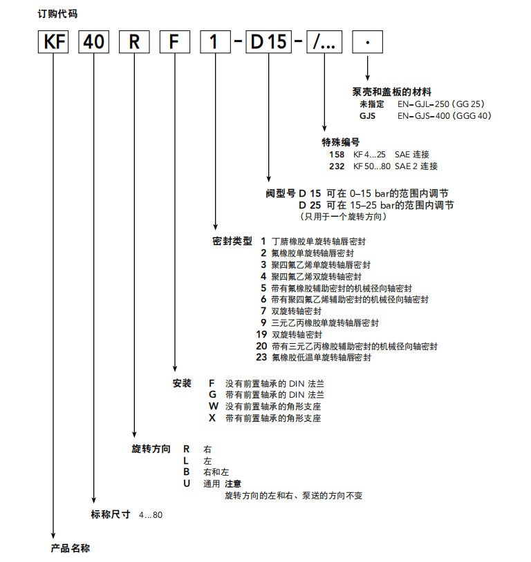 D15代表的是齒輪泵自帶的溢流閥的閥門類型,有D15和D25可供選擇