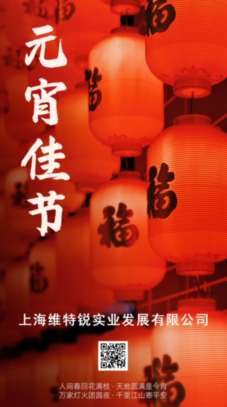 在這燈火輝煌、團團圓圓的元宵佳節之際,上海維特銳實業發展有限公司向全體員工和廣大客戶致以最誠摯的節日祝福!