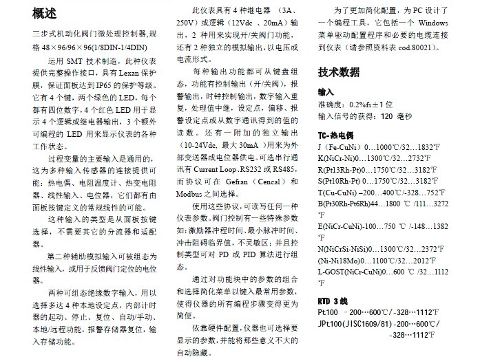 意大利GEFRAN杰佛倫-1800PV閥門控制器。意大利GEFRAN1800PV閥門控制器有2中面板尺寸可選,分別為(48x48mm/96X96mm)面板可組態輸入/輸出。儀表面板保護等級可達IP65,有效防止的意外損壞。GEFRAN1800V閥門控制器主要應用于擠出機、注塑機、包裝機械、食品加工設備等。GEFRAN1800V可面板組態輸入/輸出方便快捷,繼電器、邏輯、加熱/制冷、PID控制輸出,自帶密碼保護功能,可防止意外組成錯誤引起麻煩,另外GEFRAN1800V閥門控制器自帶閥門位置反饋功能,方便隨時監控閥門當前位置。