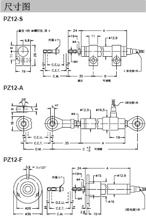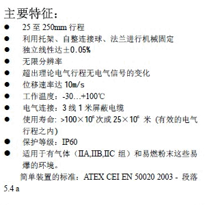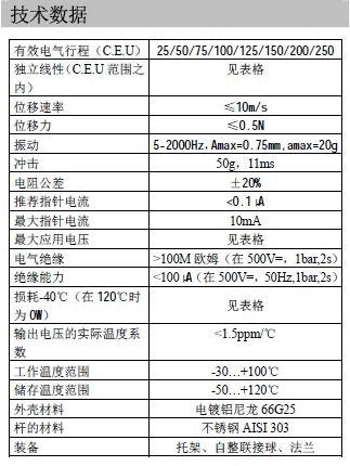 GEFRAN PZ12直線位移傳感器又稱電子尺、電阻尺等。GEFRAN PZ12直線位移傳感器提供了三種不同的尺寸及安裝方式,適合于大部分油缸位移的檢測。測量量程從50~250mm、獨立線性度±0.5%、防護等級IP65、位移速度>5m/S、最大供電電壓60vdc、重復性0.01mm、本質無線分辨率。GEFRAN PZ12直線位移傳感器使用環境溫度-30~100°C、殼體材料使用不銹鋼材質、電阻公差±20%。GEFRAN PY3直線位移傳感器內部碳膜電阻涂層,配合電刷滑動實現電阻變化,從而轉換為位移量。