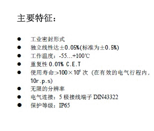 GEFRAN-PR65旋轉(zhuǎn)位移傳感器。意大利GEFRAN PR65旋轉(zhuǎn)位移傳感器,獨(dú)立線性度可選±1%~±0.05%、電阻可選1~10K歐、震動(dòng)5-2000HZ、工作環(huán)境溫度可達(dá)-555~100°C。意大利GEFRAN PR65旋轉(zhuǎn)位移傳感器在工廠通過(guò)了各種環(huán)境測(cè)試,例如超壓測(cè)試、疲勞測(cè)試、電氣穩(wěn)定性測(cè)試等等。