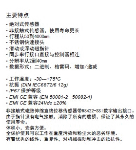 GEFRAN MK4S非接觸磁滯伸縮位移傳感器輸出為標(biāo)準(zhǔn)模擬量輸出,電壓0~10v、電流4...20mA可選,極大方便了數(shù)據(jù)的采集處理。
