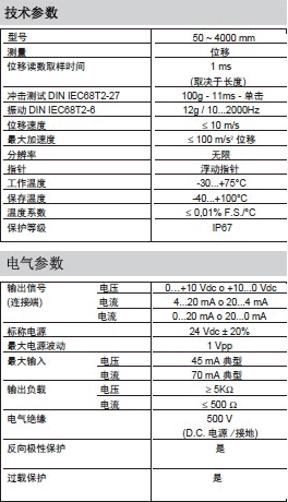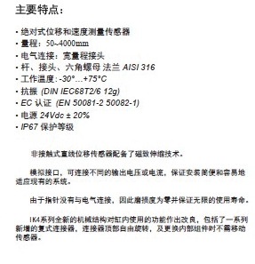 GEFRAN IK4A非接觸磁滯伸縮位移傳感器輸出為標準模擬量輸出,電壓0~10v、電流4-20mA可選,極大方便了數據的采集處理。