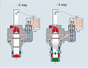 為2通或3通比例插裝閥,帶集成式電子放大器,根據輸入信號的大小提供高動態的流量控制。