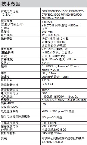GEFRAN PC67直線位移傳感器又稱電子尺、電阻尺等。GEFRAN PC67拉桿式直線位移傳感器,防護等級高達IP67。采用內部碳膜電阻涂層,配合電刷滑動實現電阻變化,從而轉換為位移量。GEFRAN PC67直線位移傳感器采用拉桿式設計,配合萬向節安裝。LT67拉桿式位移傳感器獨立線性度為±0.5%FS,量程從50~900mm可選。位移速度小于5m/s、殼體材料使用不銹鋼材質、最大供電電壓可達60VDC、電阻公差±20%。