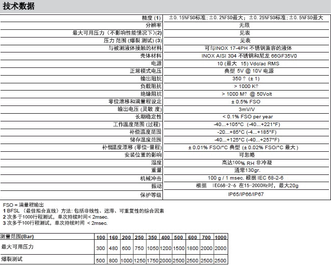 GEFRAN-TPS壓力傳感器。意大利GEFRAN TPS壓力傳感器又稱壓力變送器、壓力探頭、壓力感應器等。GEFRAN TPS壓力傳感器精度±0.15%、傳感器壓力量程0~1000bar、本質無限分辨率、傳感器供電電壓最大30VDC、2倍滿量程超壓。